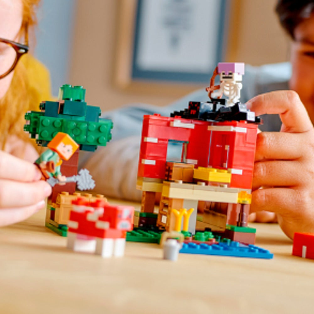 - Aventuras Minecraft®: Las posibilidades de juego creativo son infinitas tanto dentro como fuera del divertido set LEGO® Minecraft La Casa-Champiñón (21179)