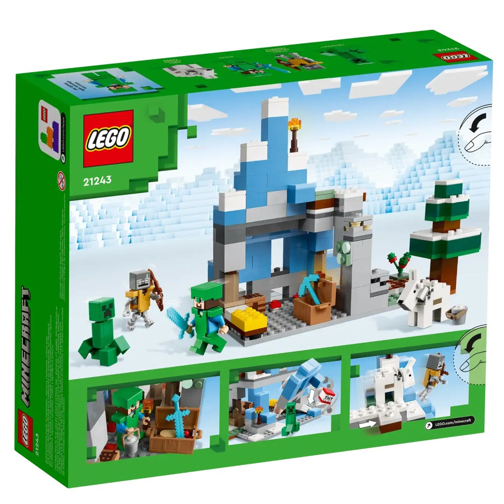 - Set Minecraft® “todo en uno”: El set LEGO® Minecraft Los Picos de Hielo (21243) viene repleto de características y funciones clásicas diseñadas para animar a los jugadores a divertirse construyendo, combatiendo, explorando y provocando explosiones