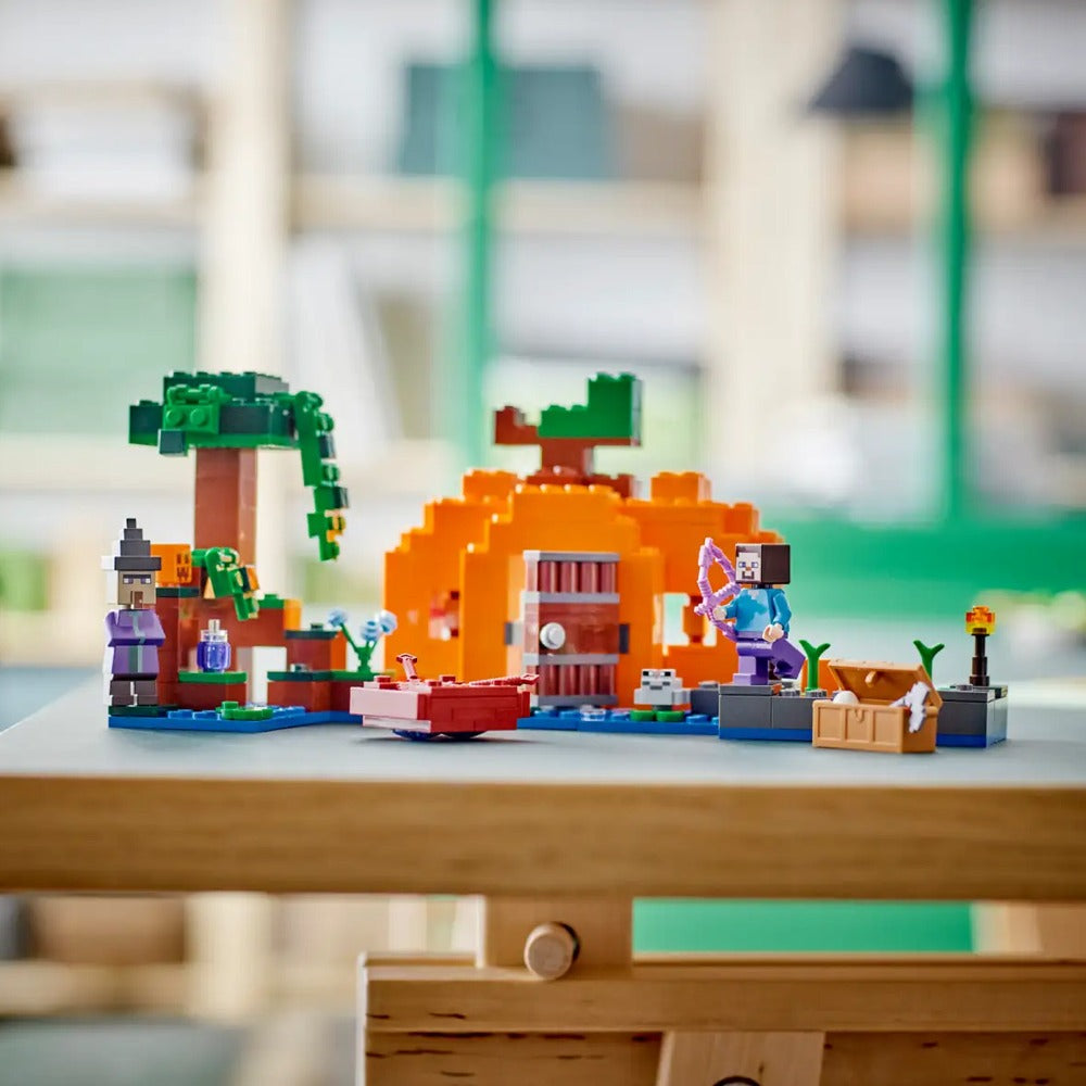- Calabazas y pociones Minecraft®: El emocionante juego LEGO® Minecraft La Granja-Calabaza (21248) está ambientado en el bioma Pantano del videojuego y recrea un huerto de calabazas