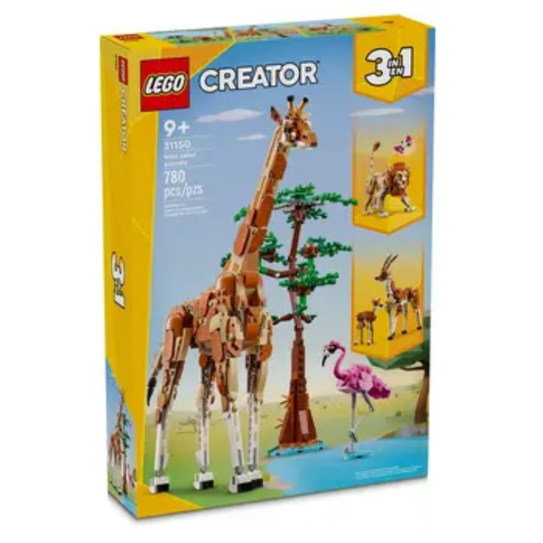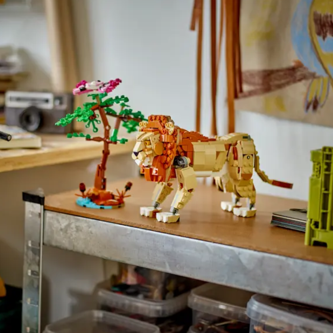 - 3 animales de safari en un 1 set, entre ellos un león de juguete: Las niñas y los niños de 9 años en adelante podrán construir y reconstruir 3 modelos diferentes con los ladrillos del set LEGO® Creator 3en1 Safari de Animales Salvajes