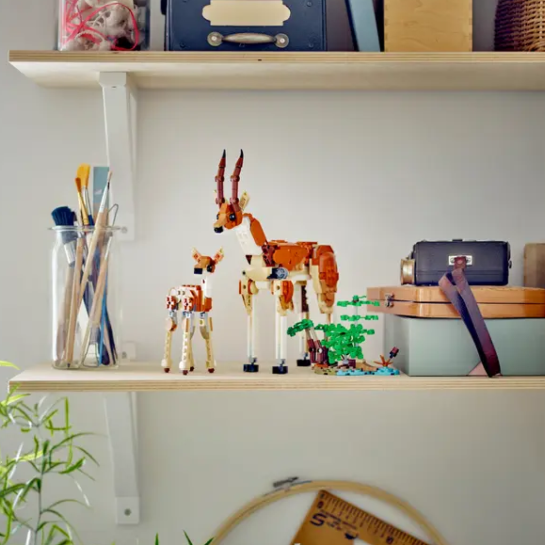 - Modelos de exposición: Los 3 modelos LEGO® de animales se sostienen de pie para que los niños puedan exponerlos en un estante o en la mesita de noche después de interpretar aventuras en el safari