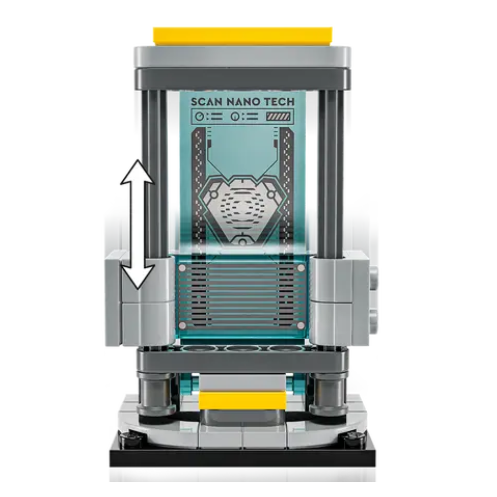 - Acción y aventuras al estilo Iron Man: El laboratorio cuenta con 3 vitrinas para las armaduras, una plataforma de mantenimiento con 2 brazos robóticos y un gran dispositivo de escaneo, y 2 cañones para cuando comience la acción de combate