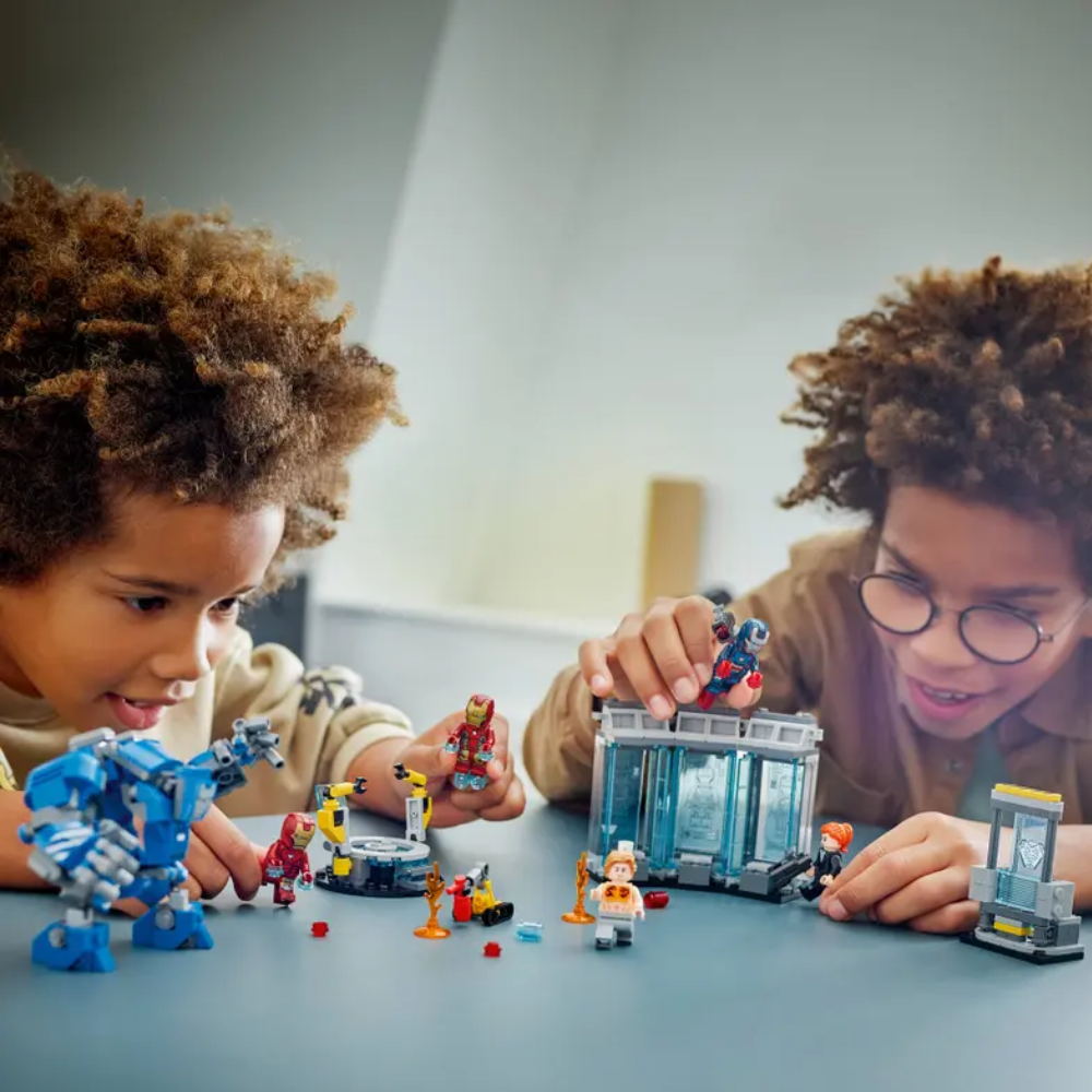 - Laboratorio de Iron Man con figuras LEGO® ǀ Marvel: El set Laboratorio de Iron Man: Sala de Armaduras para niños y niñas a partir de 8 años está basado en el universo Vengadores y diseñado para construir, jugar y exponer
