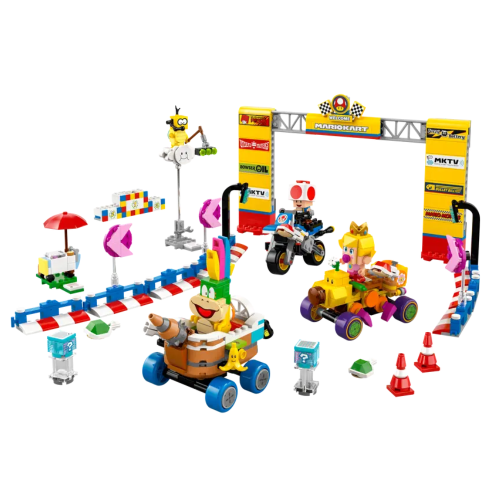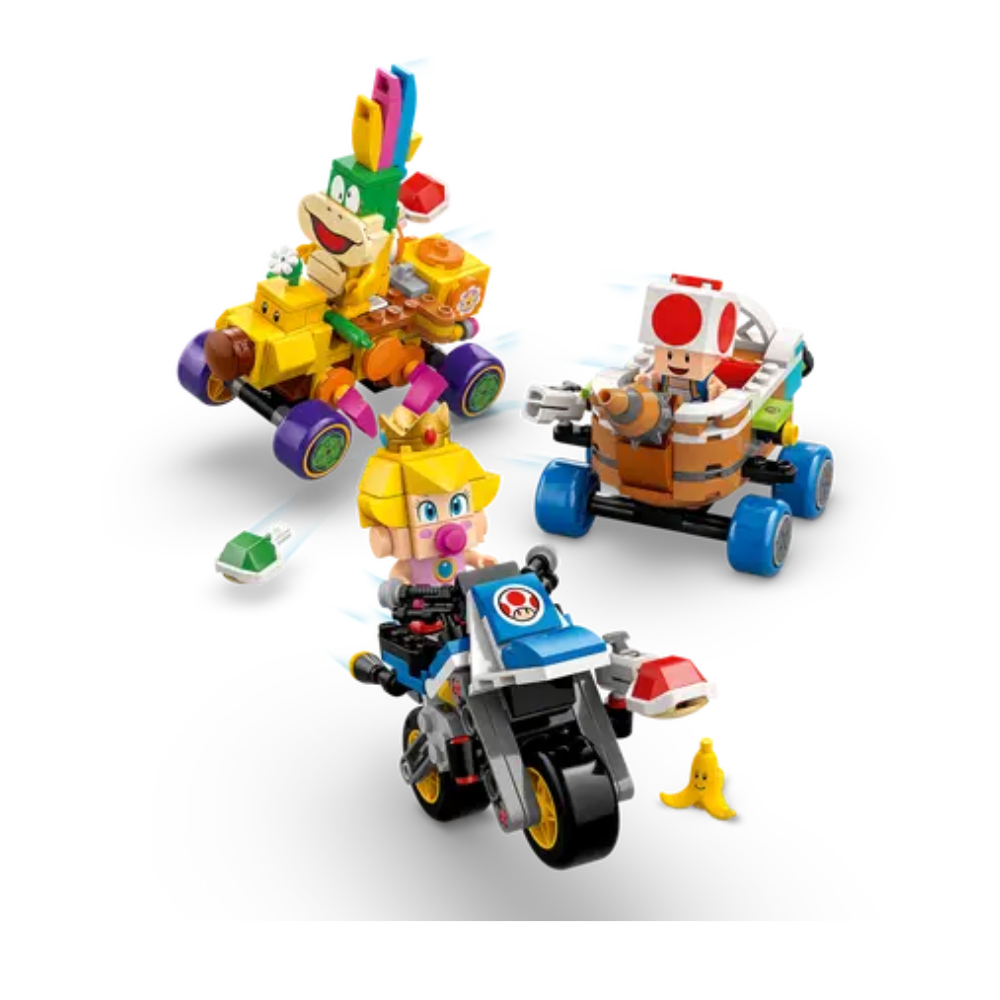 - Más posibilidades de juego: Explora la gama completa de sets LEGO® Super Mario™: Mario Kart™ (a la venta por separado) y descubre otros personajes y vehículos de juguete construibles del universo Mario Kart contra los que competir