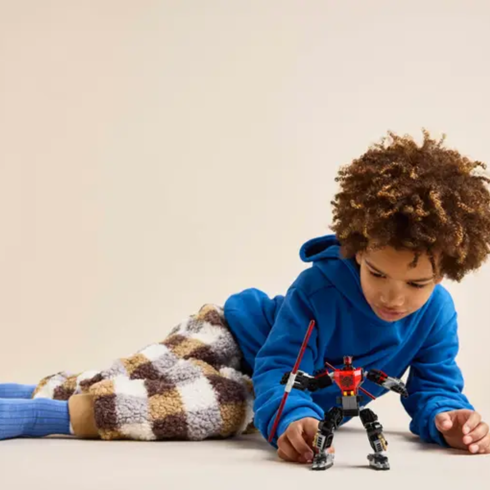 - Traje robótico construible LEGO®: El meca cuenta con manos, brazos, piernas y pies articulados, cabina que se abre con espacio para una minifigura LEGO y, además, una gran espada láser doble roja