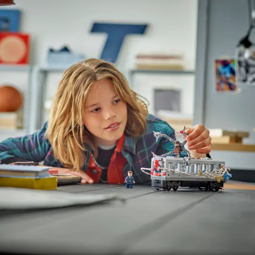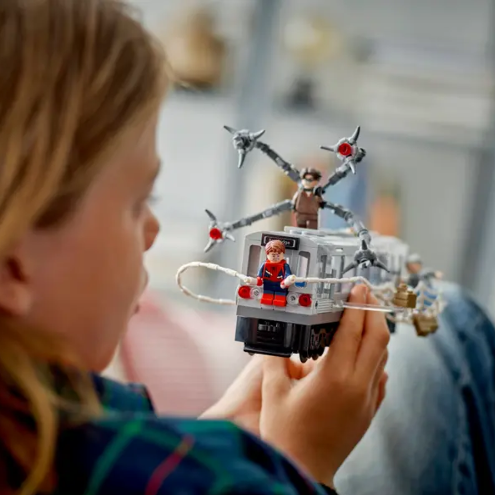 - Minifiguras LEGO® | Marvel: El set de construcción incluye minifiguras de Spider-Man, Doc Ock, J. Jonah Jameson y tía May, emblemáticos personajes de la película de Marvel Studios Spider-Man 2