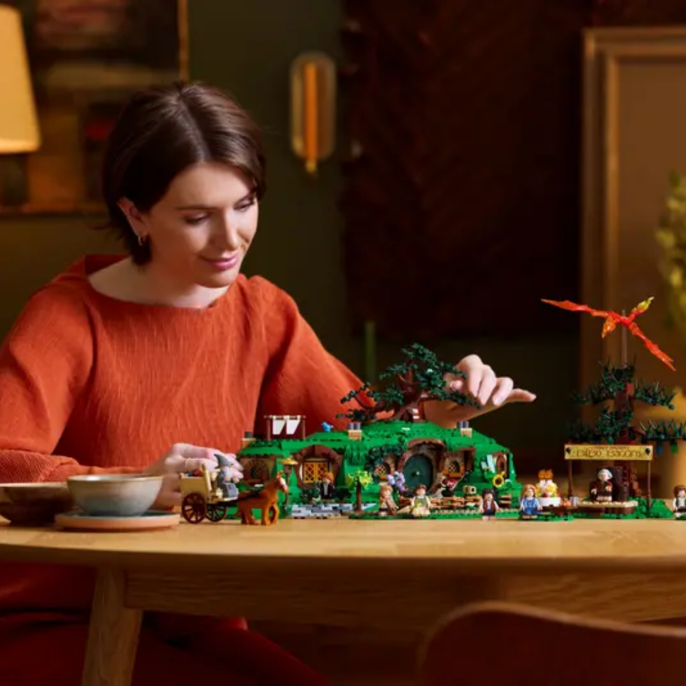 - Un set LEGO® Icons en recuerdo de las películas de la saga: Viaja al encantador agujero hobbit de Bilbo Bolsón en la región de la Comarca de la Tierra Media con el set de construcción para adultos LEGO Icons El Señor de los Anillos: La Comarca